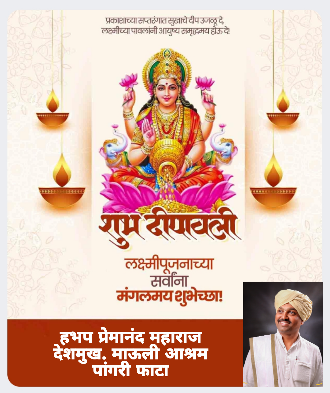 दीपावलीच्या हार्दिक शुभेच्छा. ह भ प प्रेमानंद महाराज देशमुख पांगरी फाटा.